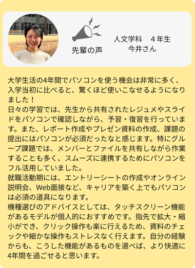 入学時から卒業まで長く使える1台を準備することが安心して学生生活を始めるポイントです。